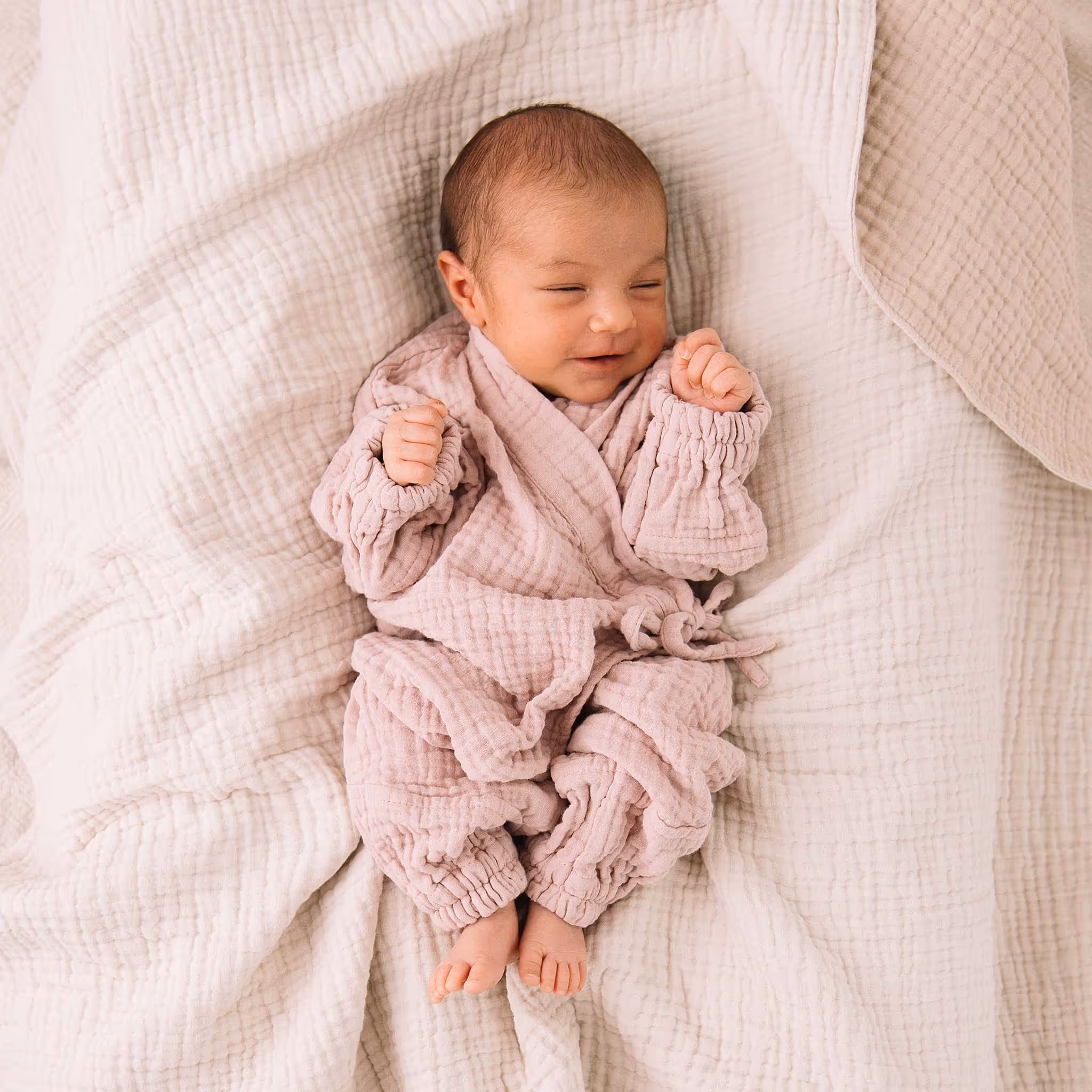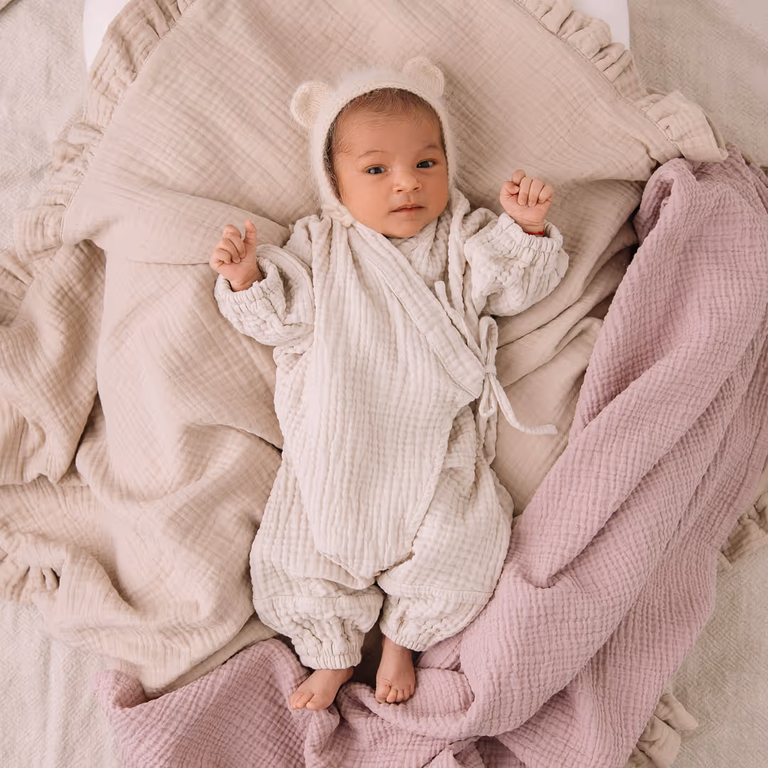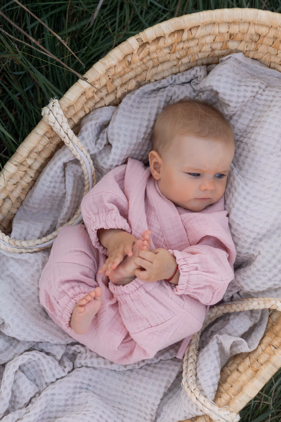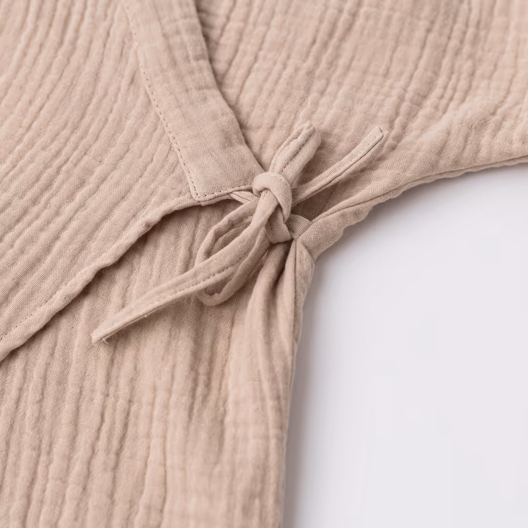 Stačí bábätko položiť na otvorené kimono a zavinúť ho doňho. Ako bábätko kimono vynosí, je len na vašej fantázii. Tak ako má široké spektrum nosenia kimono pre dospelých, podobne aj Shantala kimono môže slúžiť ako štýlové denné oblečenie, ako aj komfortné vzdušné pyžamo. Šijeme ho v tenkej aj v teplejšej verzii, z dvojvrstvového alebo trojvrstvového mušelínu.