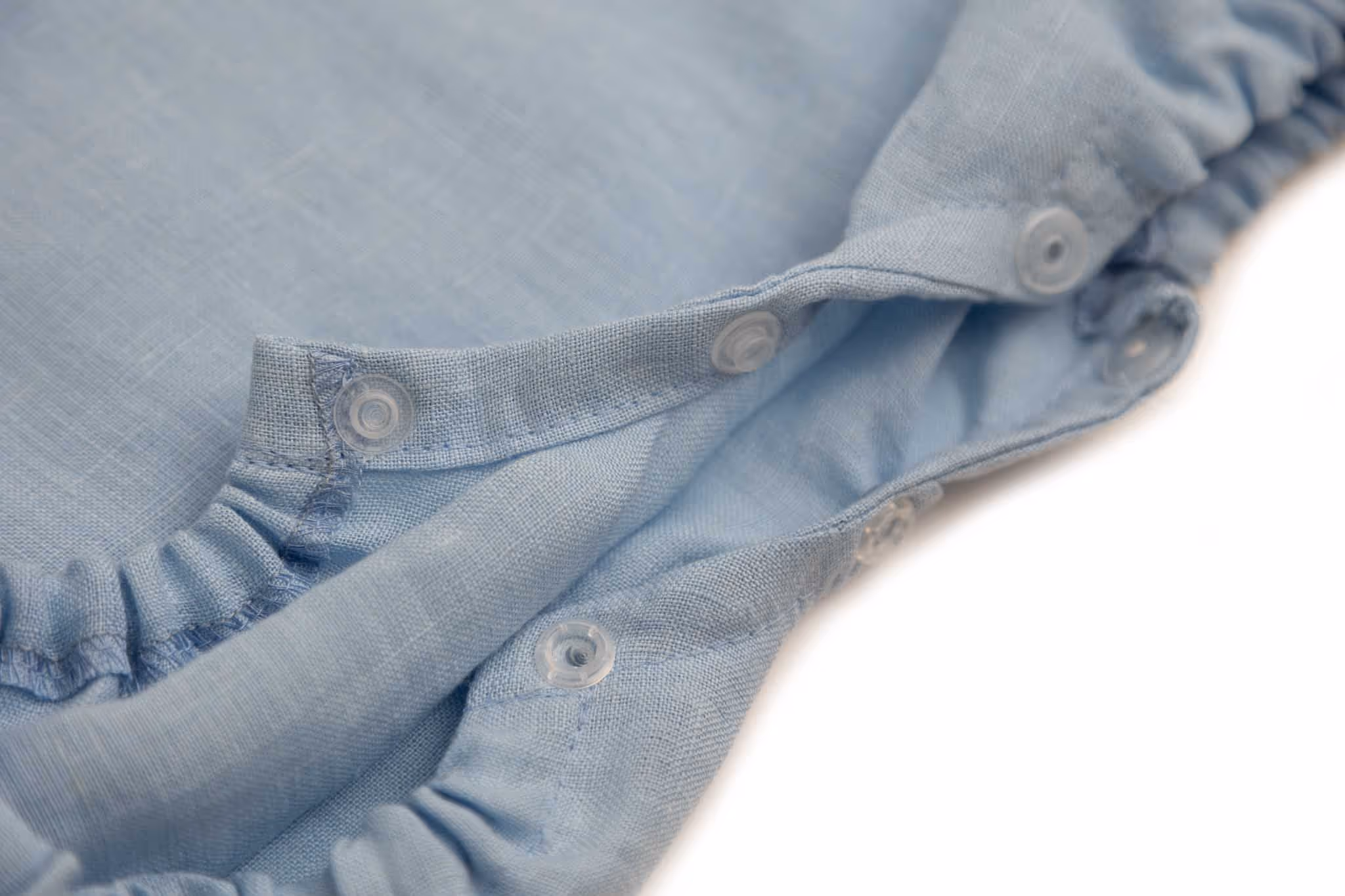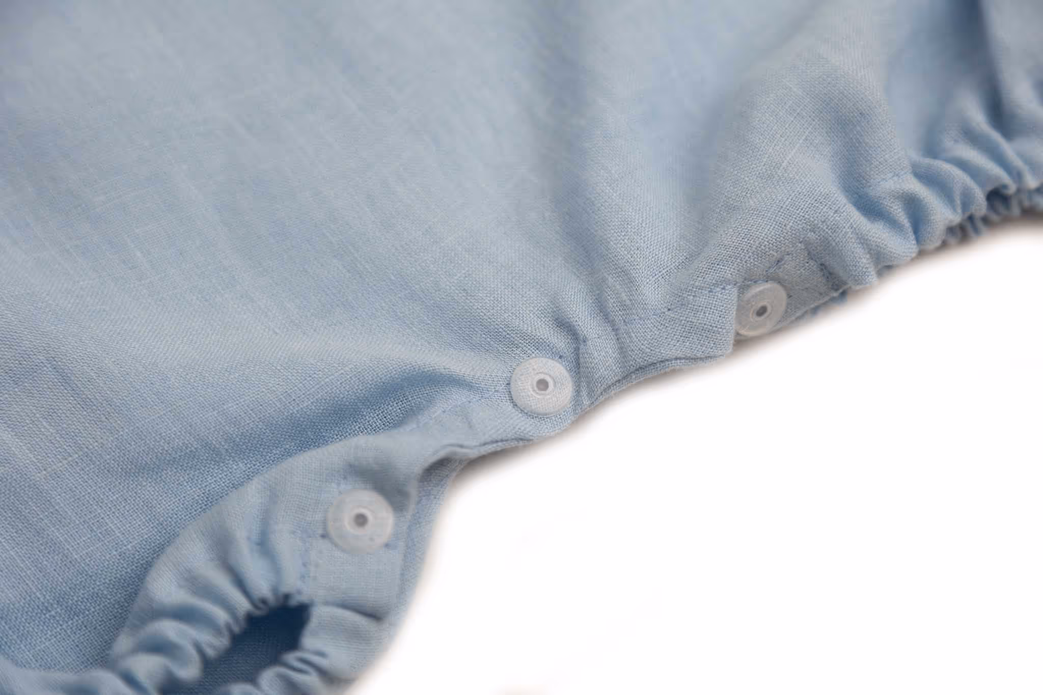 Pri prebaľovaní bábätka stačí romper rozopnúť v plienkovej oblasti, nemusíte ho vyzliekať. Predpraný, mäkčený a odľahčený ľan najvyššej kvality zabezpečuje dieťaťu aj v tých najväčších horúčavách pocit komfortu vďaka termoregulačnej a vysokej absorpčnej schopnosti.