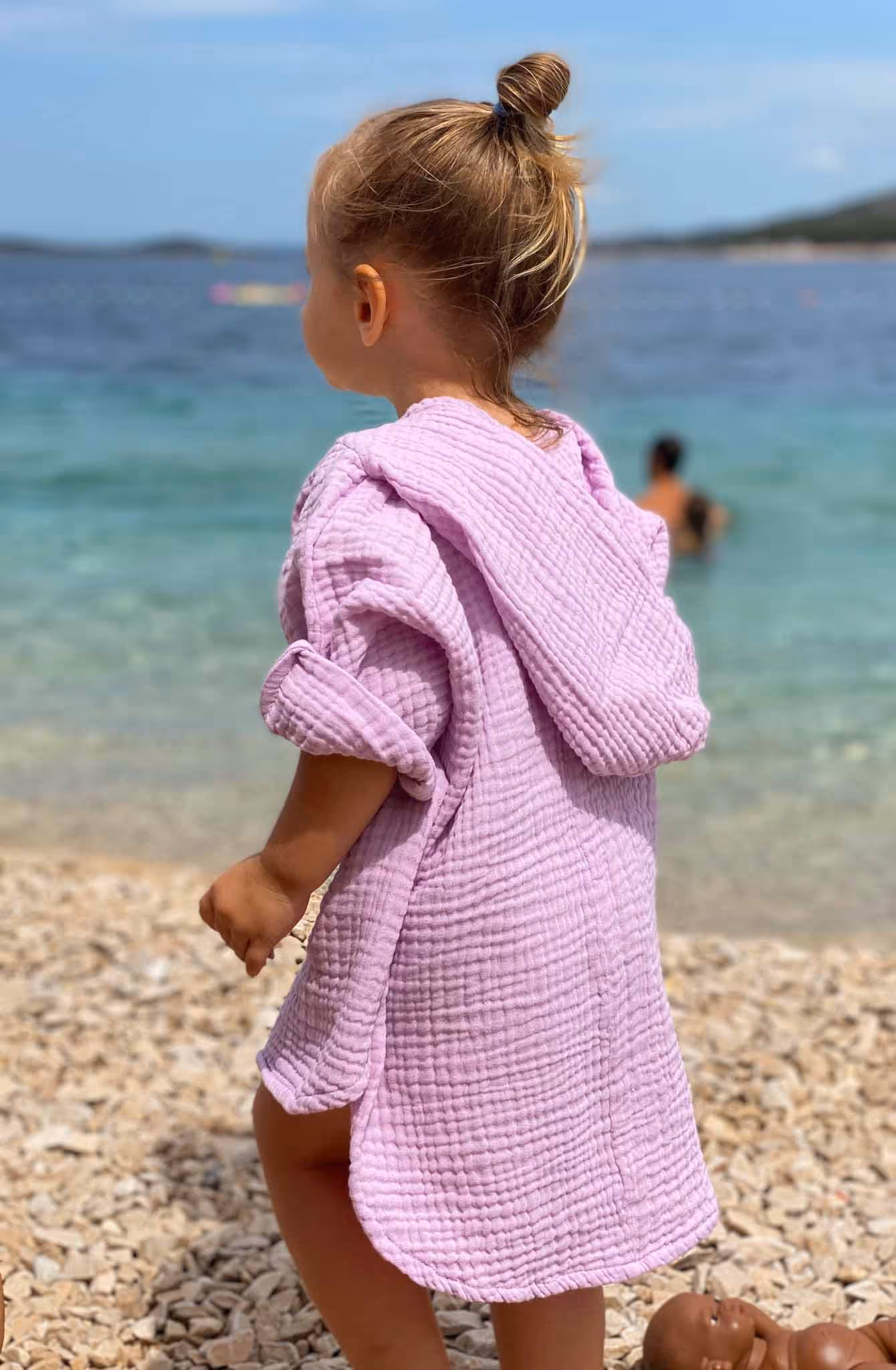 Detské mušelínové pončo s kapucňou je univerzálny letný cover-up.