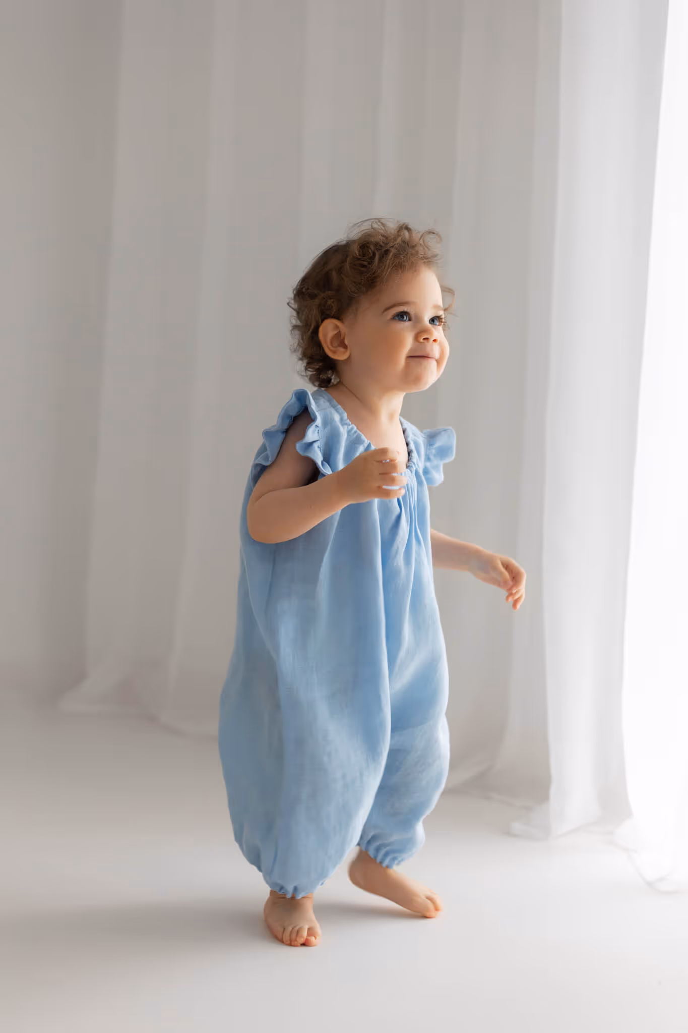 Predpraný, mäkčený a odľahčený ľan najvyššej kvality zabezpečuje dieťaťu aj v tých najväčších horúčavách pocit komfortu vďaka termoregulačnej a vysokej absorpčnej schopnosti. Každý kus oblečenia je výsledkom remeselnej ručnej práce, ušitým v slovenskej dielni.